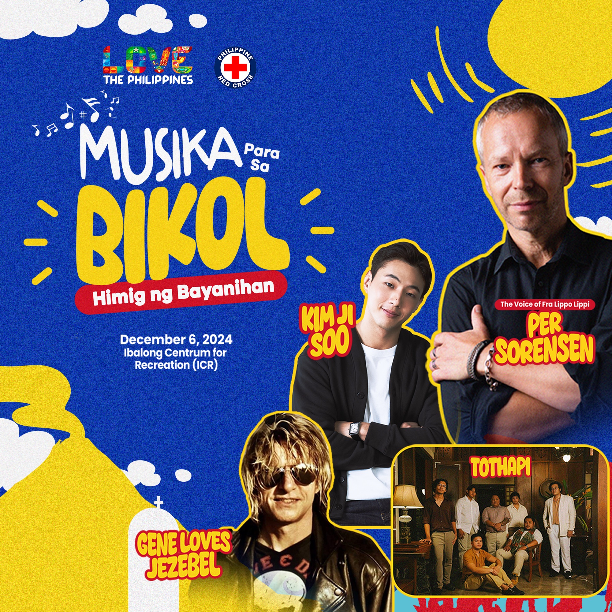 This fundraising concert is a testament to the Filipino spirit of bayanihan, uniting people to support those in need. Net proceeds and donations will go toward immediate relief efforts, as well as long-term recovery projects to help the region bounce back stronger than ever. An exciting and diverse lineup of musical acts will make for an unforgettable night of entertainment. The public can expect performances from Bicol’s homegrown talent Tothapi, South Korean sensation Kim Ji-Soo, British post-punk and glam metal band Gene Loves Jezebel, and Norwegian hitmakers Fra Lippo Lippi.