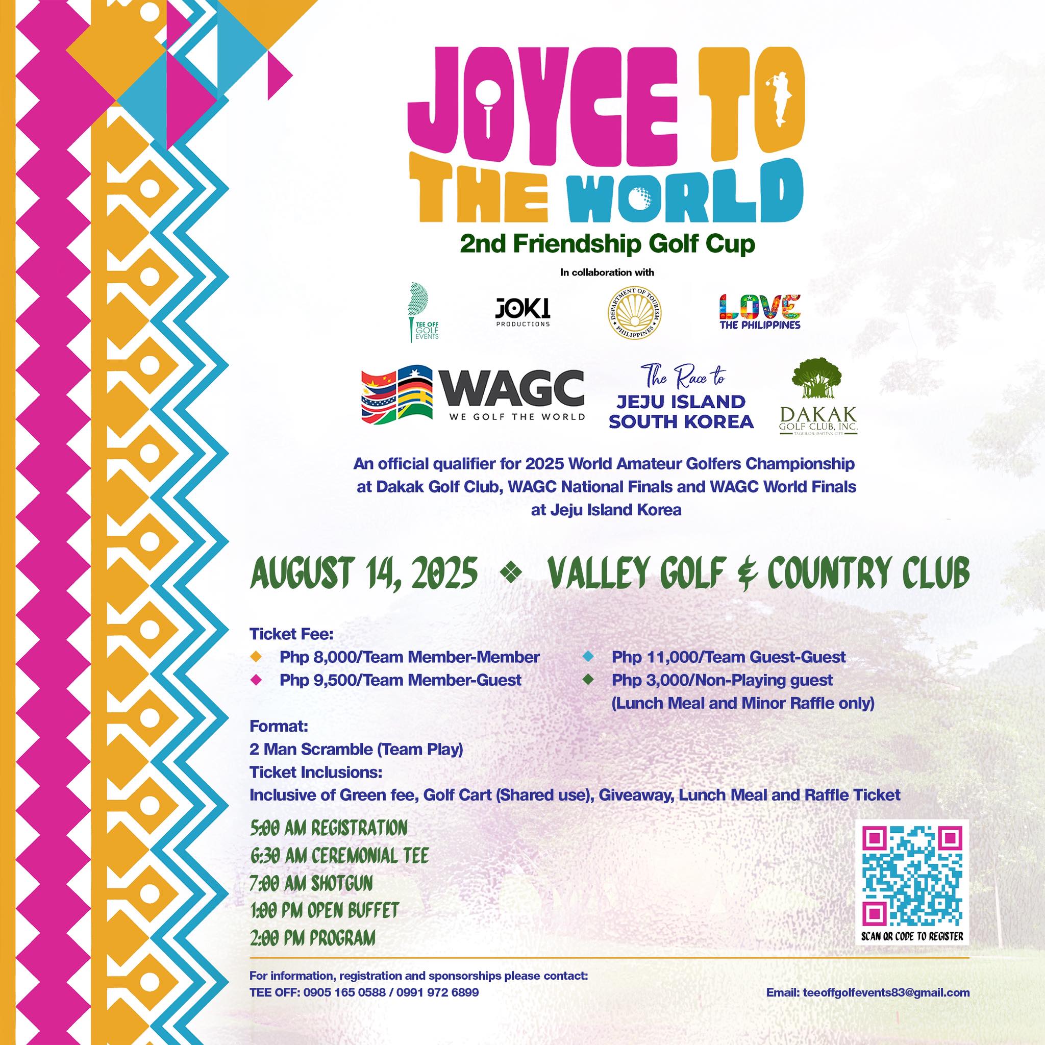 The Joyce to the World: 2nd Friendship Golf Cup returns on August 14, 2025 at Valley Golf and Country Club as an official Philippine leg qualifier for the World Amateur Golfers Championship (WAGC) in Jeju Island, South Korea.
