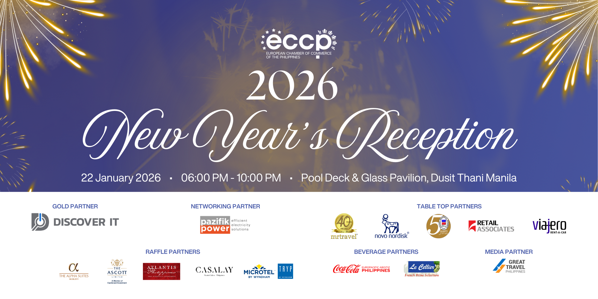 The European Chamber of Commerce of the Philippines (ECCP) will hold its New Year’s Reception on January 22, 2026 at Dusit Thani Manila.